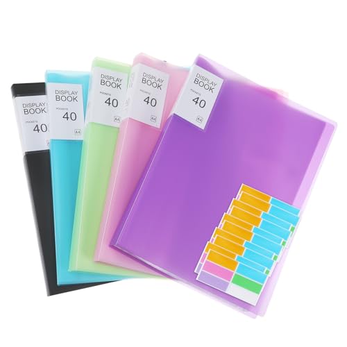 ABOOFAN A4 Plastic Presentation Folder Set of 5 Binders with 40 Pockets Each and Sticker Labels, Document Organizer Portfolio with Sleeves for Office, School, and Home Use