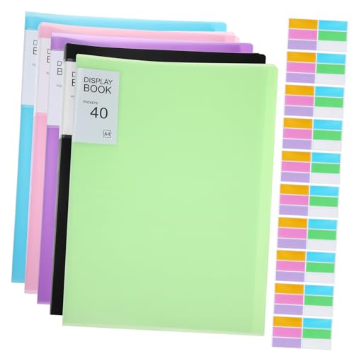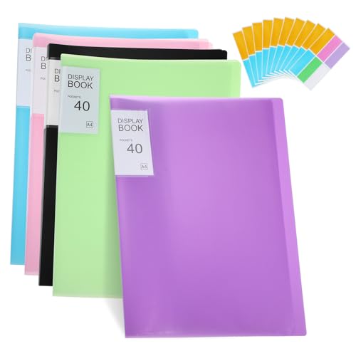 Angoily A4 Presentation Folder 5pcs with 40 Pockets Each, Plastic Sleeve Binder Portfolio Folder with Stickers for Document and Certificate Organization in Office and School