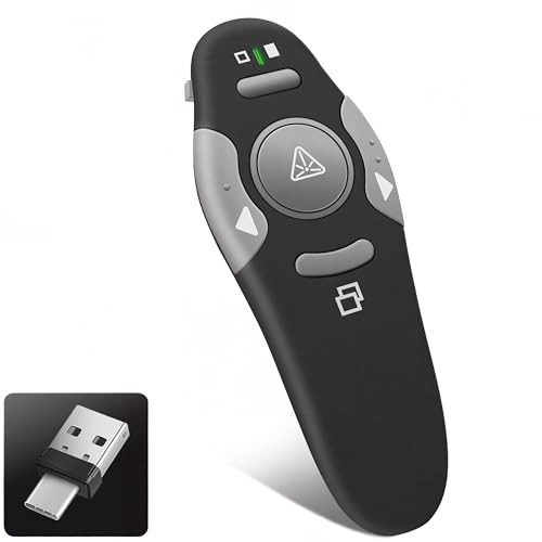 VOVIGGOL USB/Type-C 2 in 1 Rechargeable Wireless Presenter Clicker for PowerPoint Presentation Remote, 2.4GHz PPT PowerPoint Clicker Presentation Pointer Slide Advancer for Mac Computer Laptop