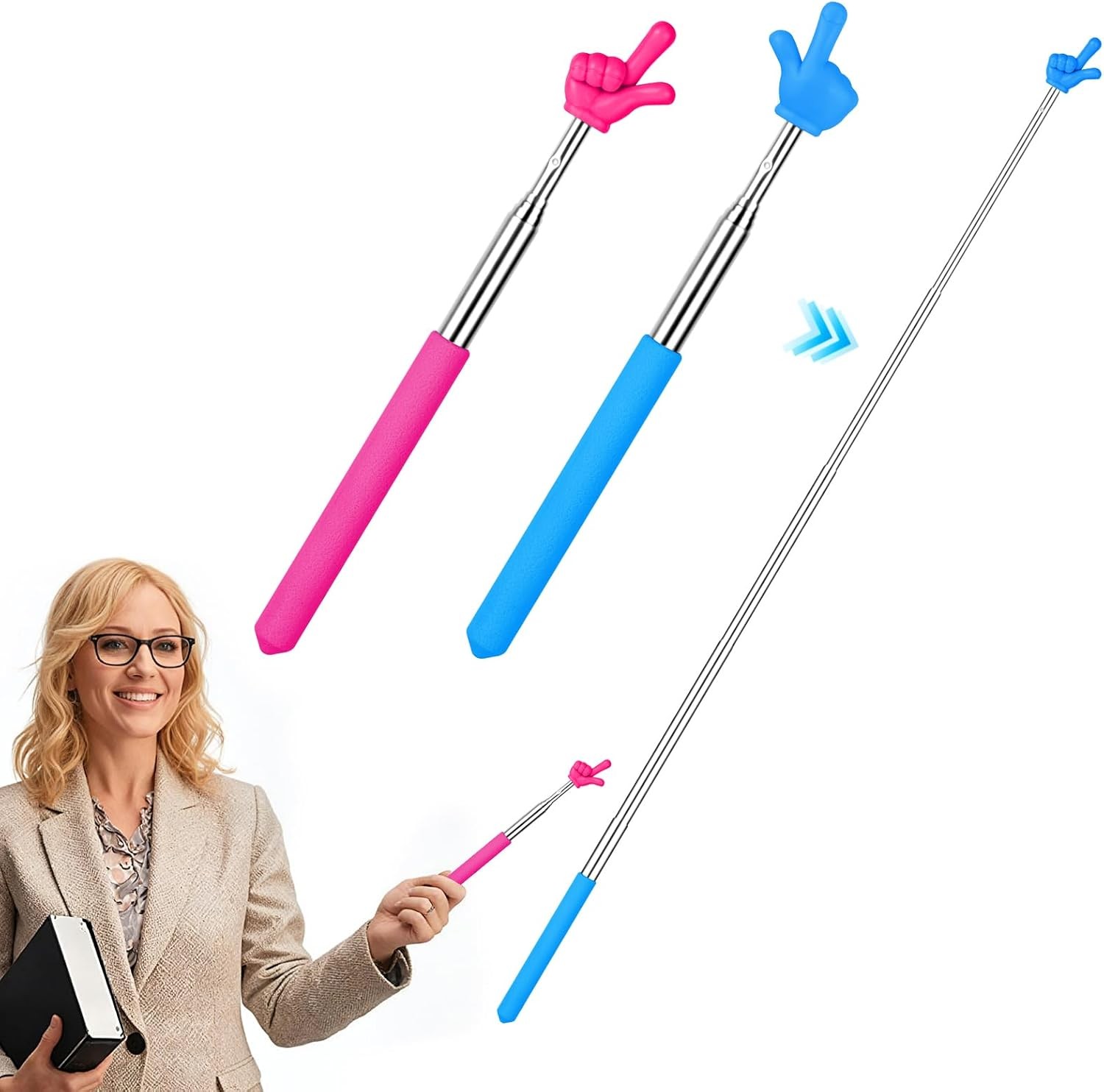 Pointer Finger - Extendable Teacher Pointing Stick, Reading Pointer, Presentation Tool for Primary School, Whiteboard, Classroom Board, Teacher, Interactive Teaching