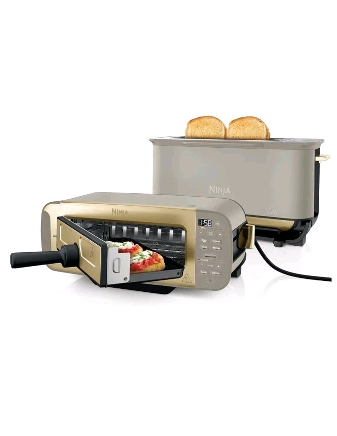 Bundle of Ninja Perfect Temperature Kettle, 1.7L, with Temperature Control, LED Display, KT201UKSTGD + Ninja Foodi 3-in-1 Toaster, Grill and Panini Press with Flip Design, Stone Gold ST202UKSTGD