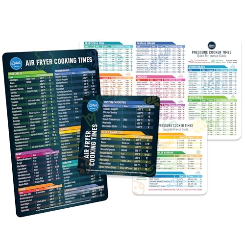 Air Fryer Magnetic Cheat Sheet Set, Air Fryer Accessories Cook Times Pressure Cooker Magnet Sheet Quick Reference Guide for Cooking and Frying (Black Bundle)