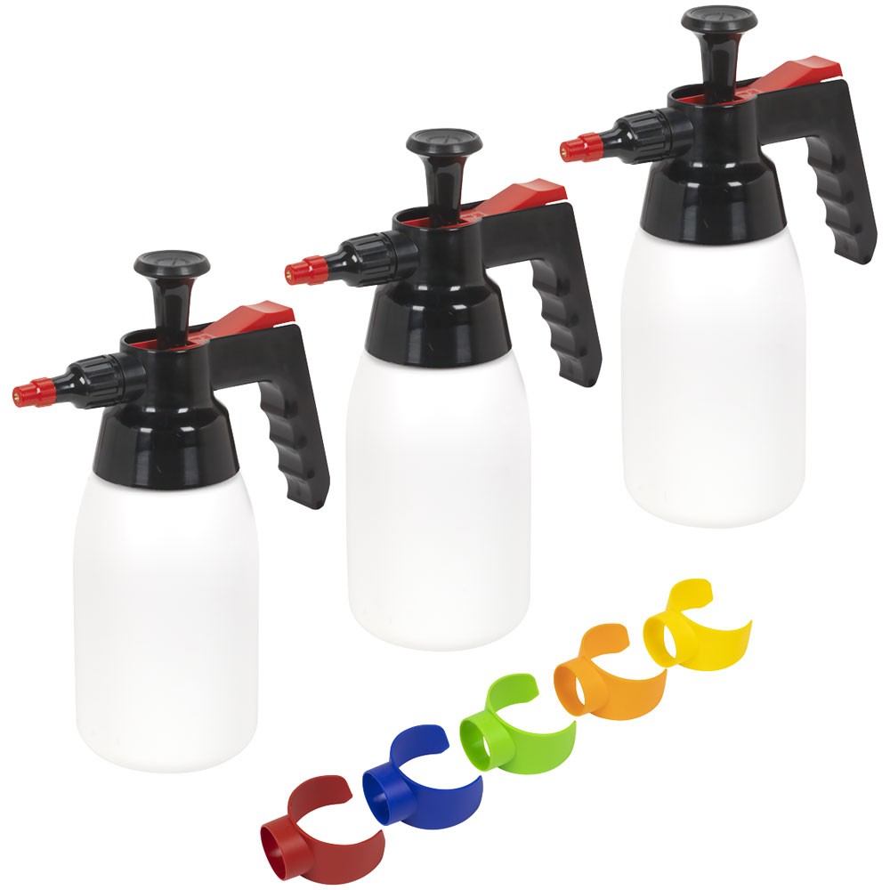 Sealey SCSGCOMBO Premium Pressure Solvent Sprayers & Colour-Coded Caps Combo 1L