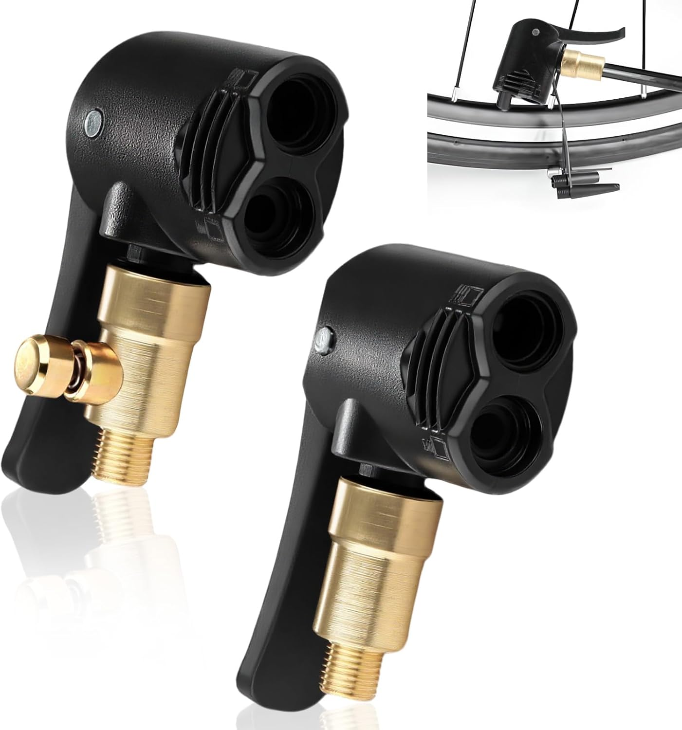 2 Pack Dual Head Bike Valve Adapter, Presta Valve Pump Adapter with Connector He