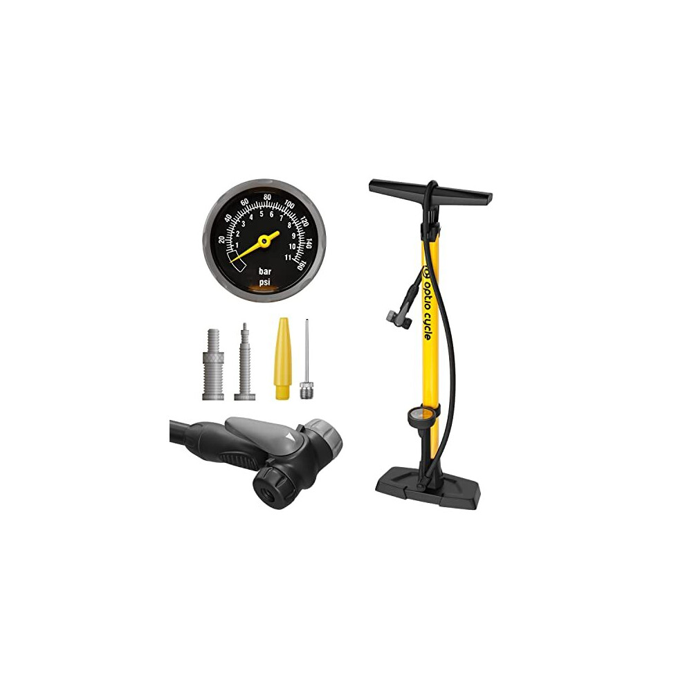 Tyre Pump With Pressure Gauge Optio Cycle Presta Valve Pump 160 PSI 11 Bar Bike Tyre Pump Track Pump Bike Pumps With Pressure Gauge Bicycle Pump With