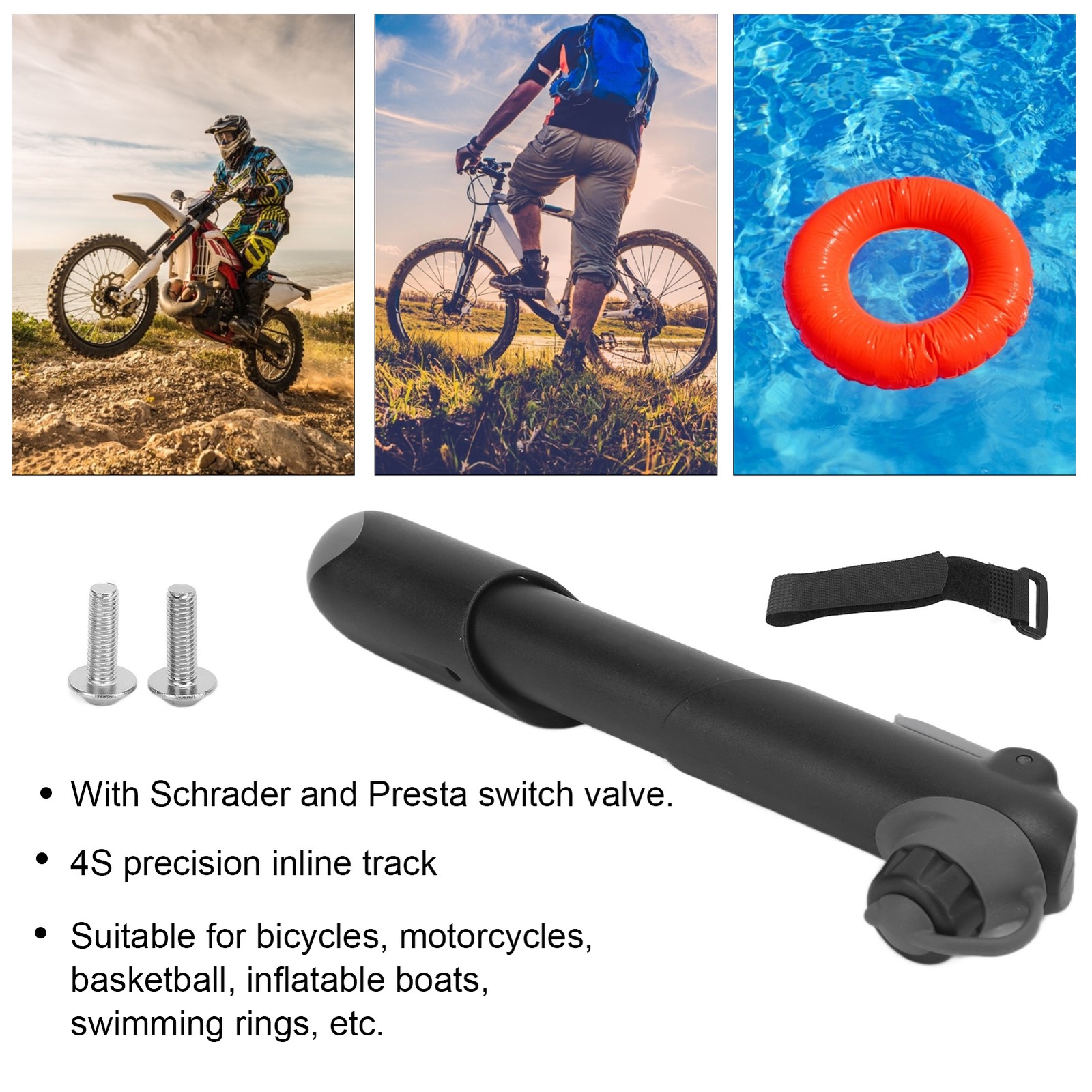Mini Bike Pump Presta and Schrader Valve Compatible Handy Size with Frame Clips
