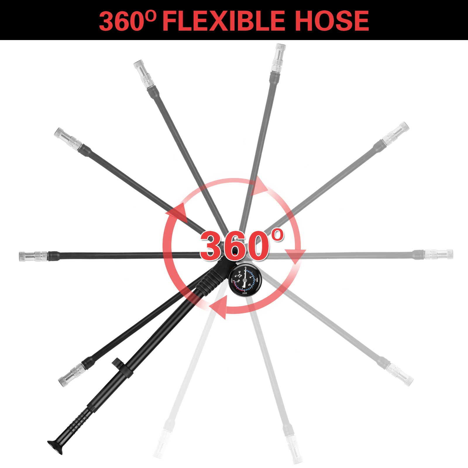 Portable Bike Pump with Hose Aluminum Alloy Bicycle Hand Air Pump Presta Schrade