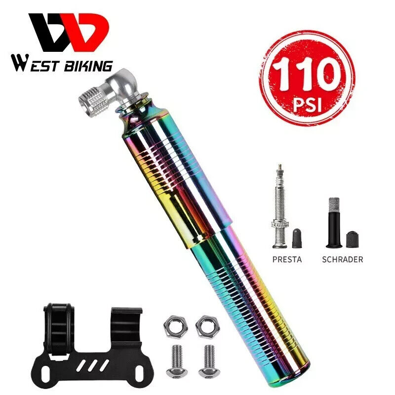 WEST BIKING Colorful Mini Bike Pump Presta Schrader Valve Tyre Inflator 110PSI