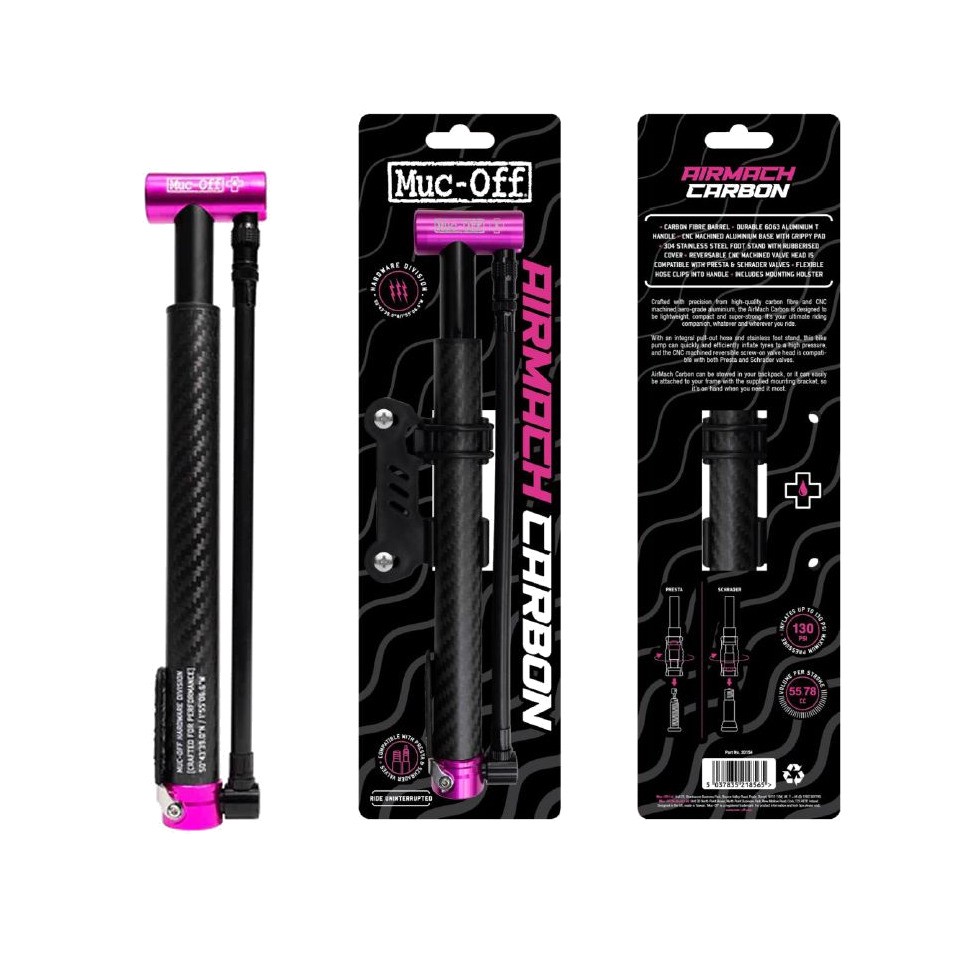 MUC-OFF Mini inflator pump presta/standard carbon AIRMACH