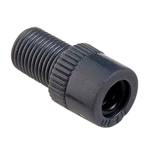 Adapter/transformer Schrader to Presta plastic pump connector with seal.