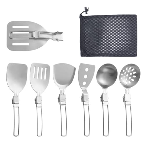 ATPWONZ Camping Cookware Set 7Pcs Camping Pots And Pans 304 Stainless Steel 900Ml 600Ml Cooking Pots 14.8Cm Frying Pan 13Cm Plate With 3Pcs Cutlery Set For Camping, Picnic Includes Carry Bag