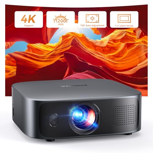 [2025 Upgrade] 4K Short Throw Projector, 1200 ANSI, Smart TV OS Compatible with Netflix/Prime Video, TOF Auto Focus, Dolby Audio, KOGATA Portable Outdoor Movie Projector for Home Cinema
