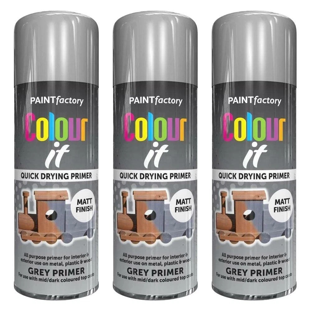 Paint Factory Tough Stuff Enamel Grey Primer Spray Paint for Wood Metal 400ml X3