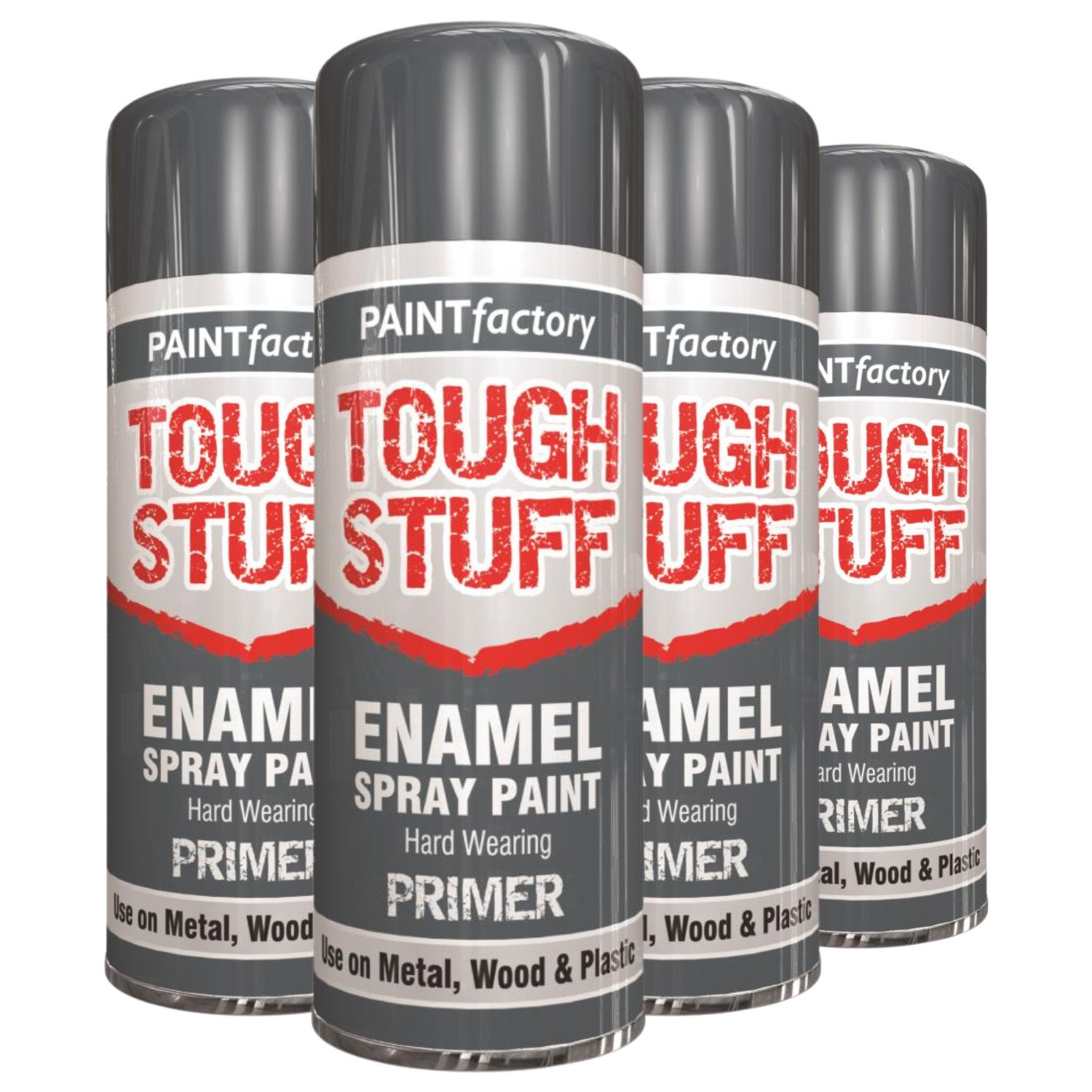 Paint Factory Tough Stuff Enamel Grey Primer Spray Paint for Wood Metal 400ml X4