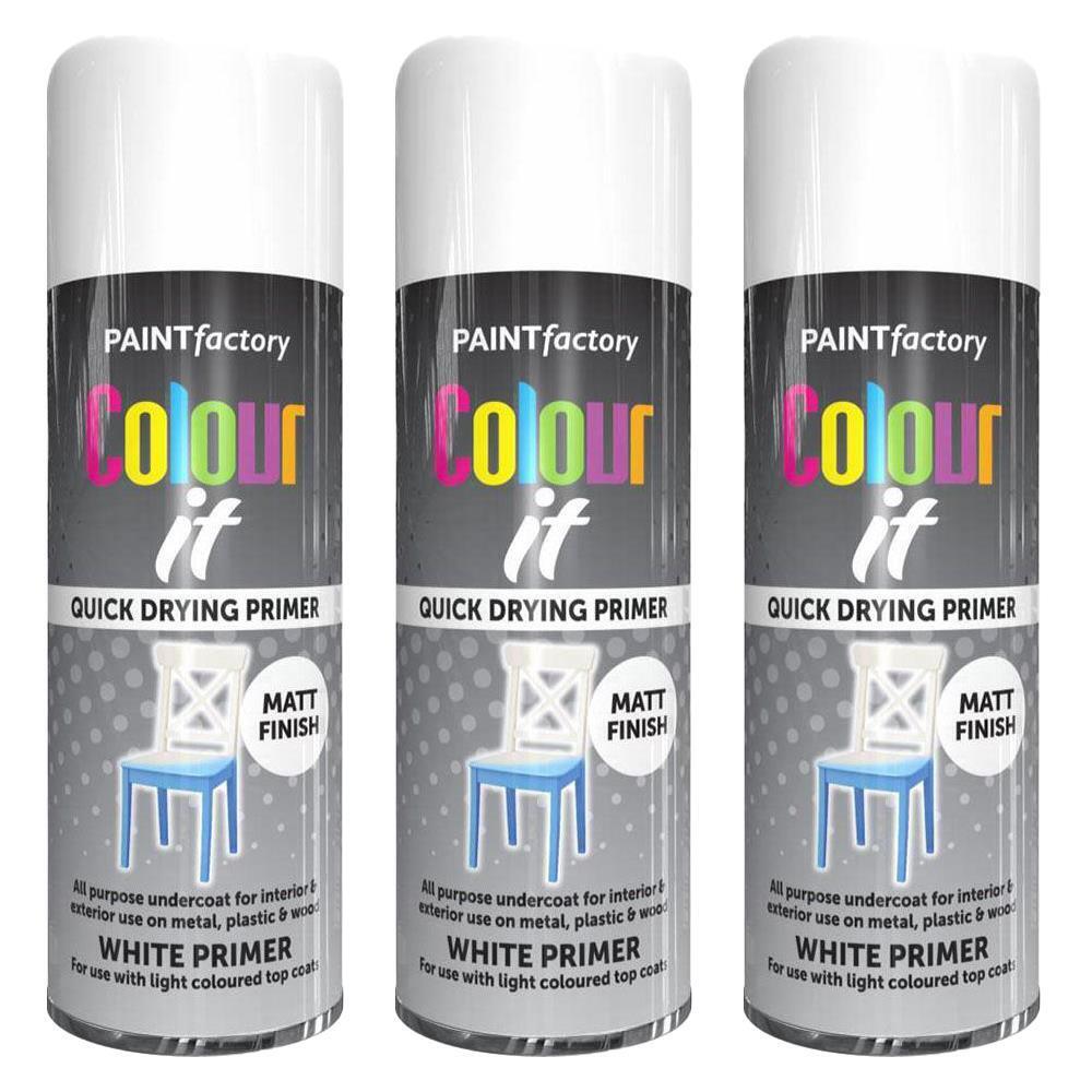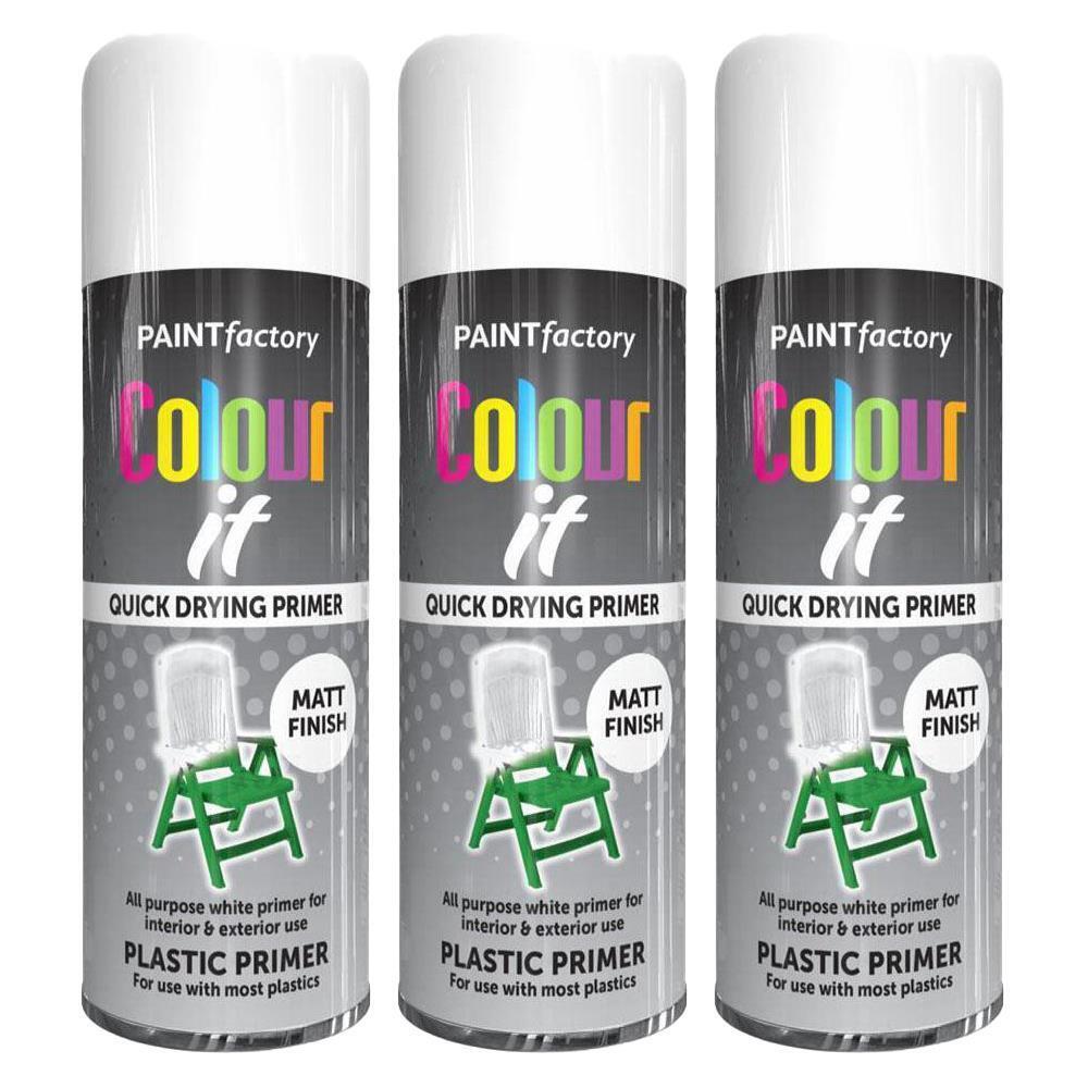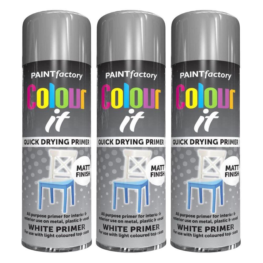 3 x COLOUR IT WHITE PRIMER MATT FINISH SPRAY PAINT 400ML HOUSEHOLD CAR PLASTIC