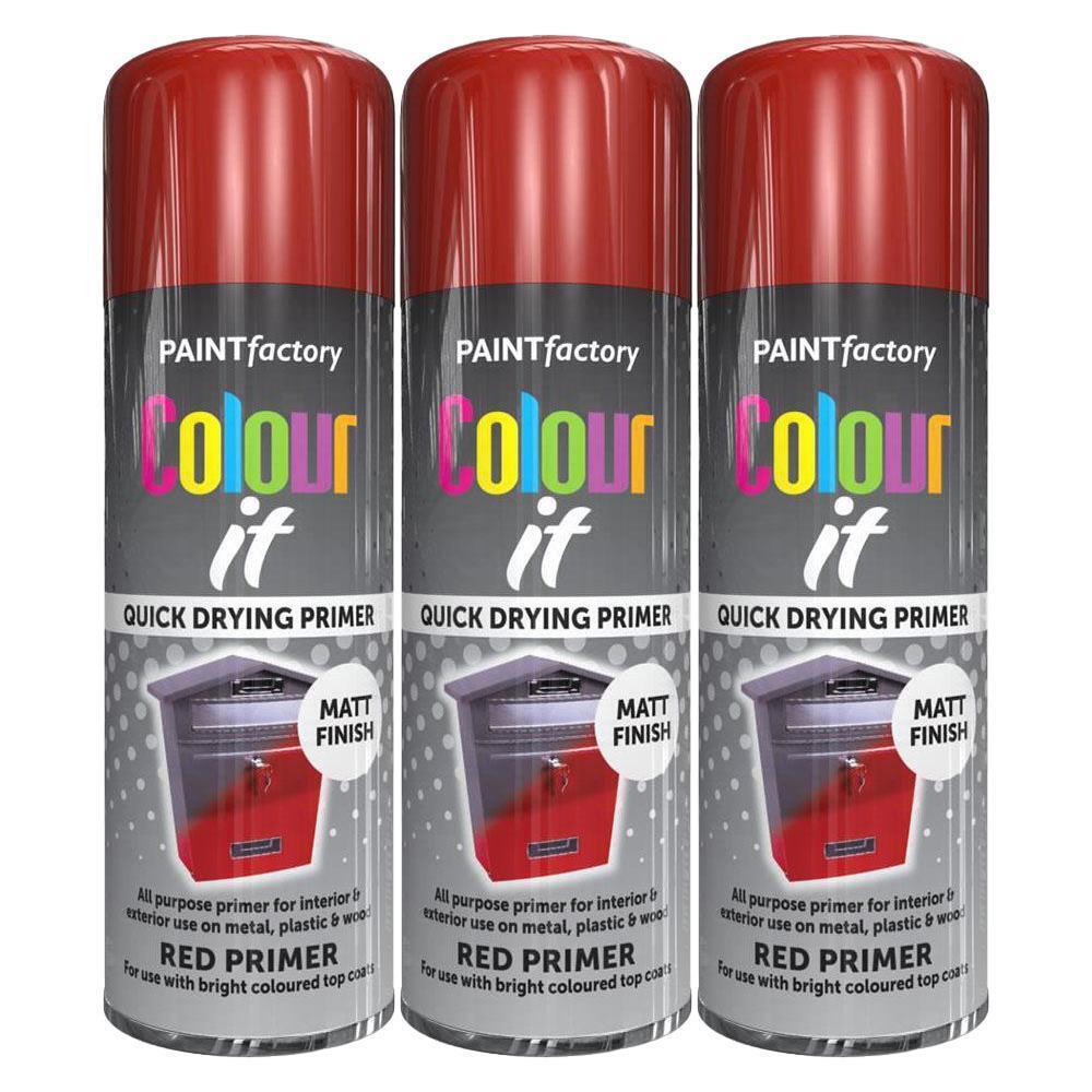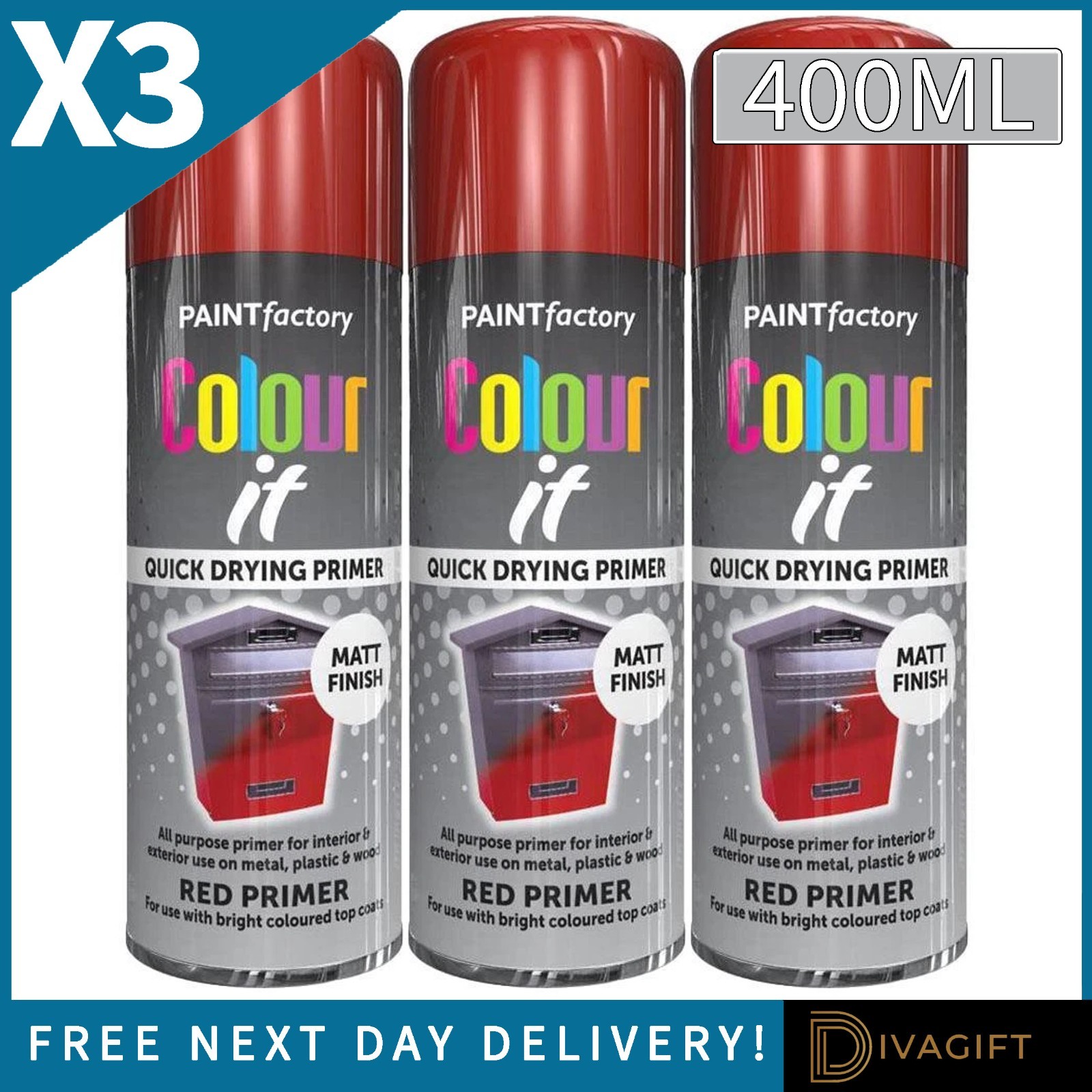3X Red Primer Spray Paint Aerosol Auto Car Lacquer Wood Metal 400ml