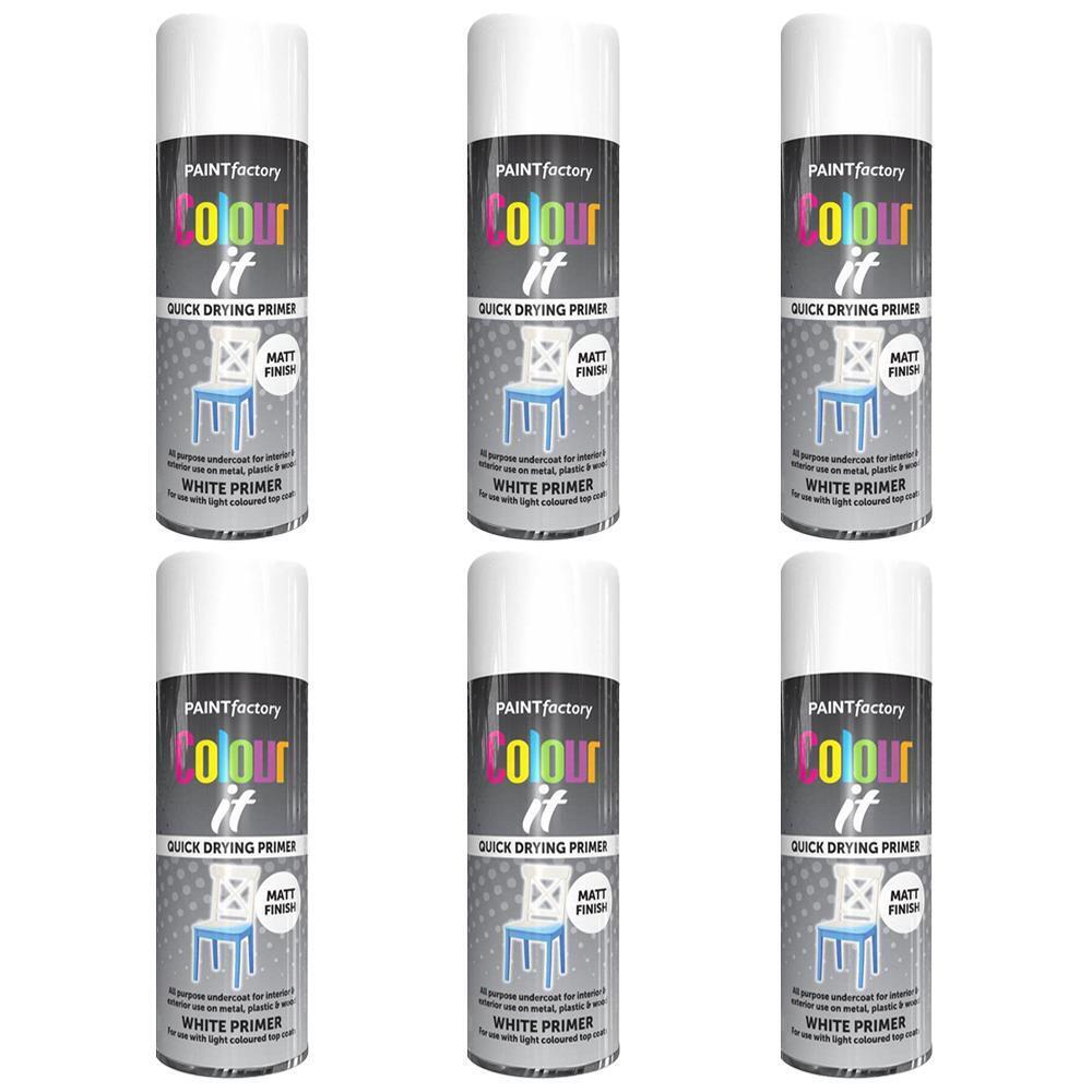 6X White Primer Spray Paint Aerosol Auto Car Wood Metal 250ml