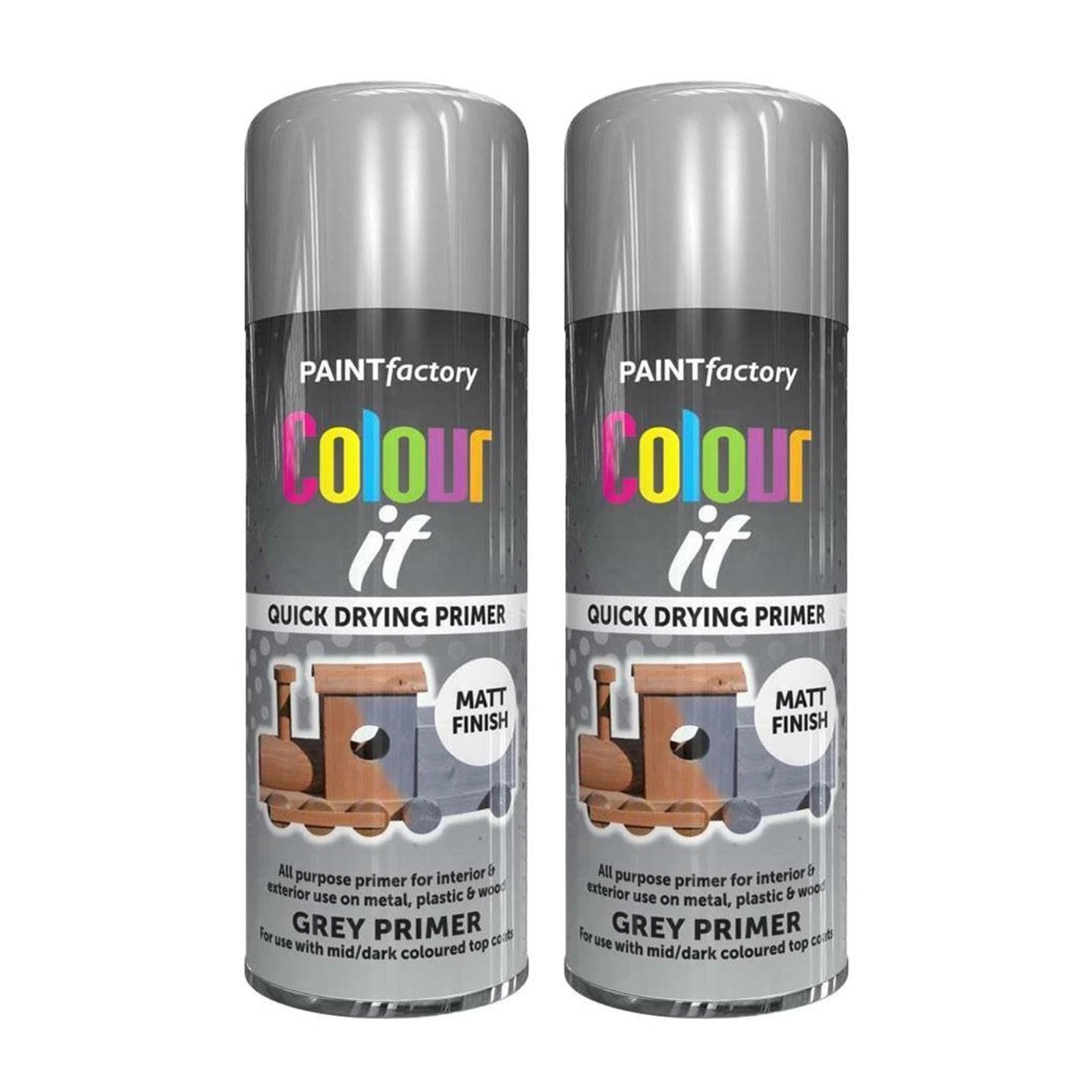 2X Grey Primer Spray Paint Aerosol Auto Car Lacquer Wood Metal 400ml