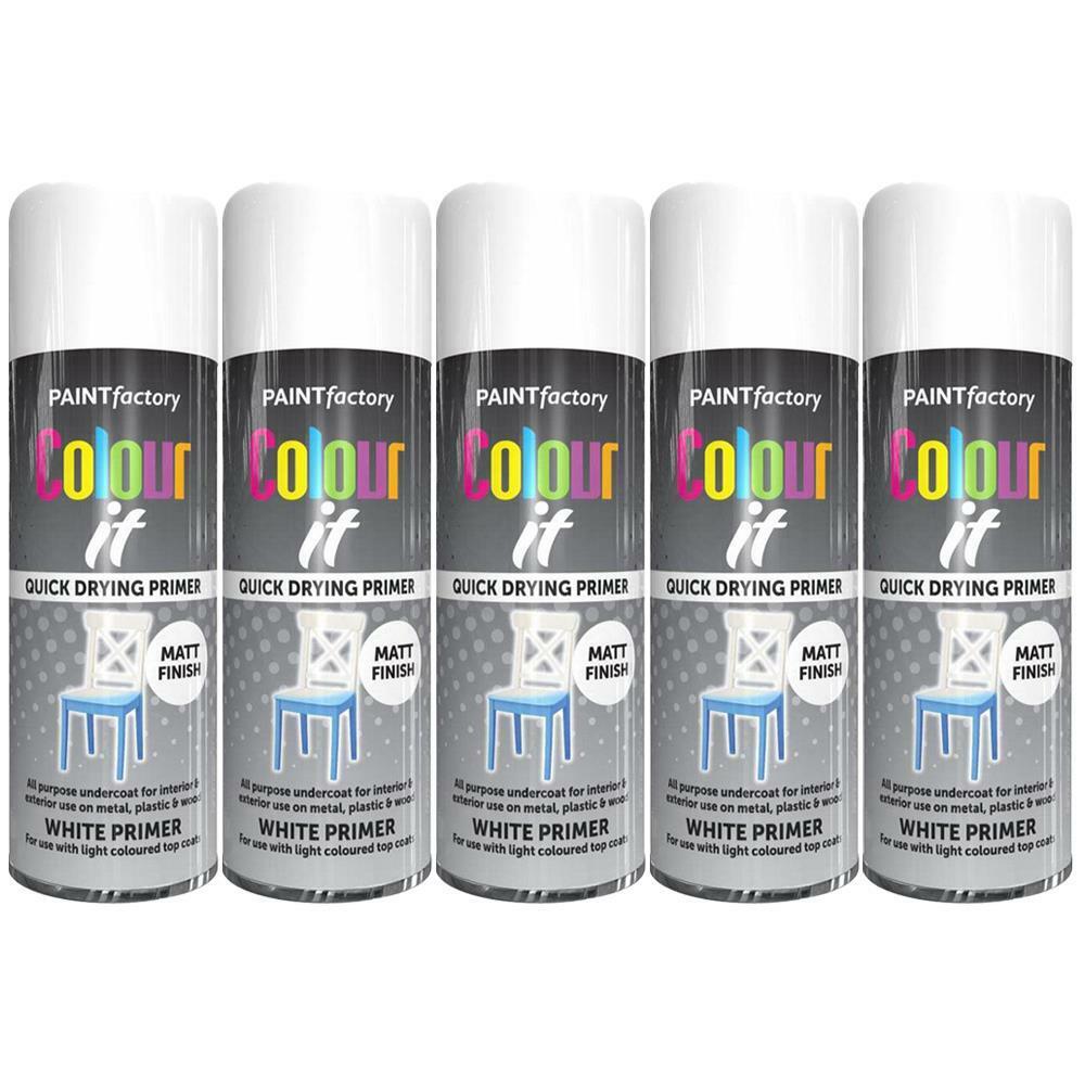 5X White Primer Spray Paint Aerosol Auto Car Wood Metal 250ml