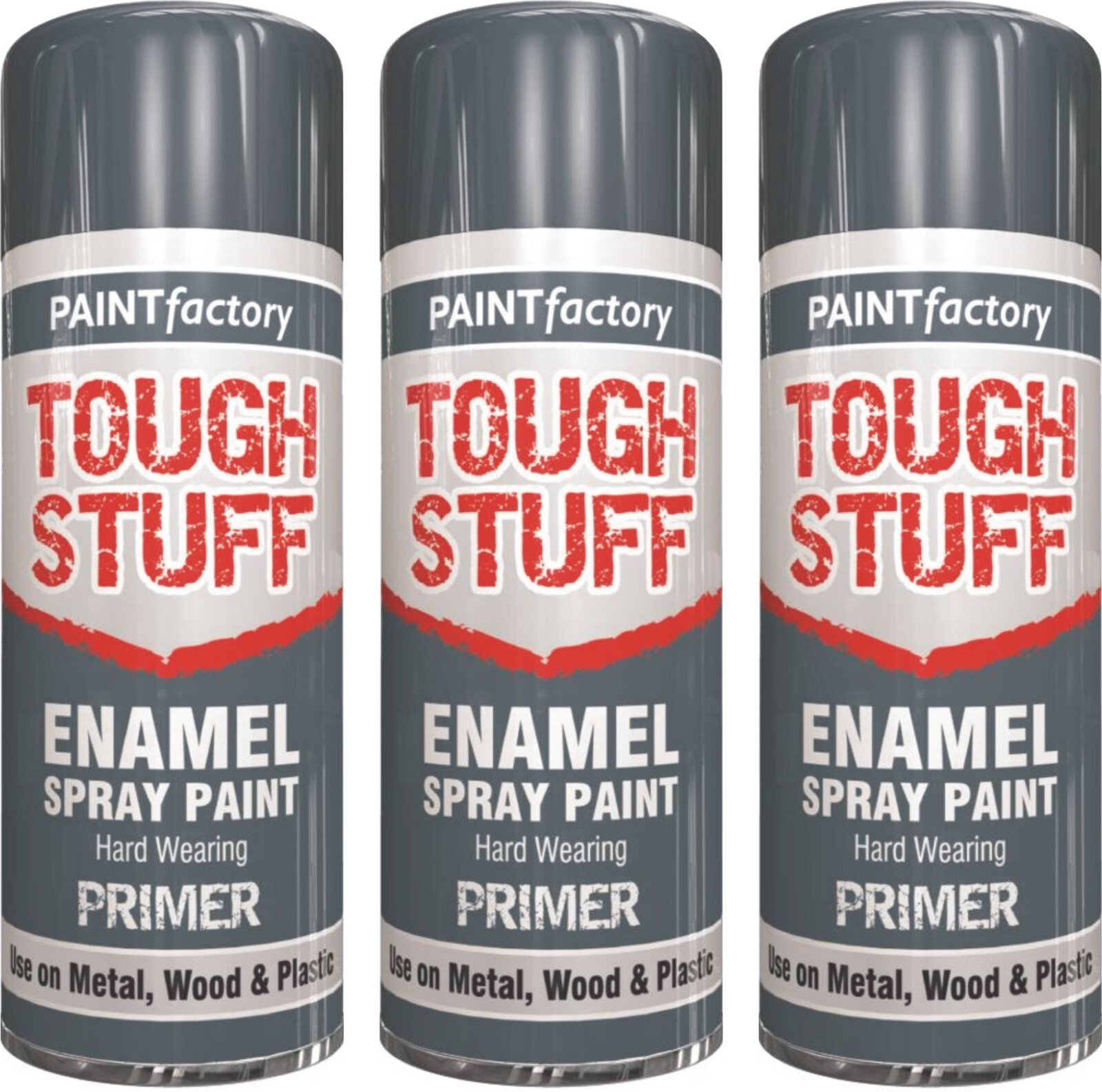3 x 400ML TOUGH STUFF ENAMEL GREY PRIMER SPRAY PAINT FOR WOOD METAL PLASTIC