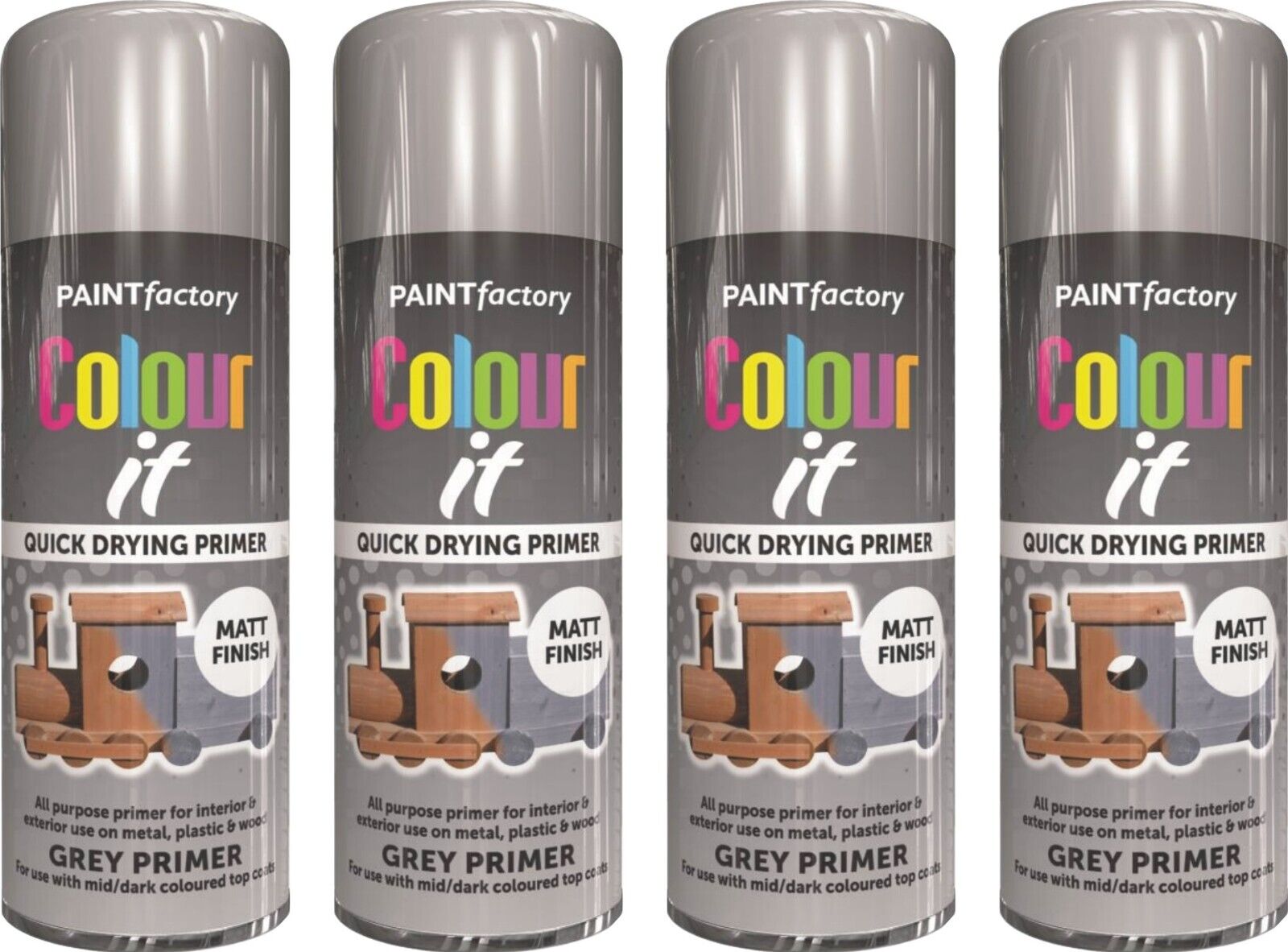 4 x 400ML GREY PRIMER MATT Finish SPRAY PAINT QUICK DRYING PLASTIC METAL WOOD