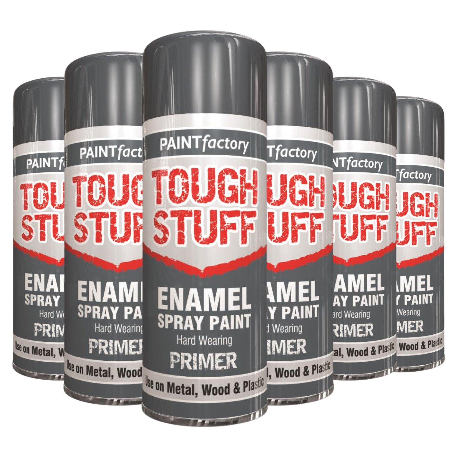 Paint Factory Tough Stuff Enamel Grey Primer Spray Paint for Wood Metal 400ml X6