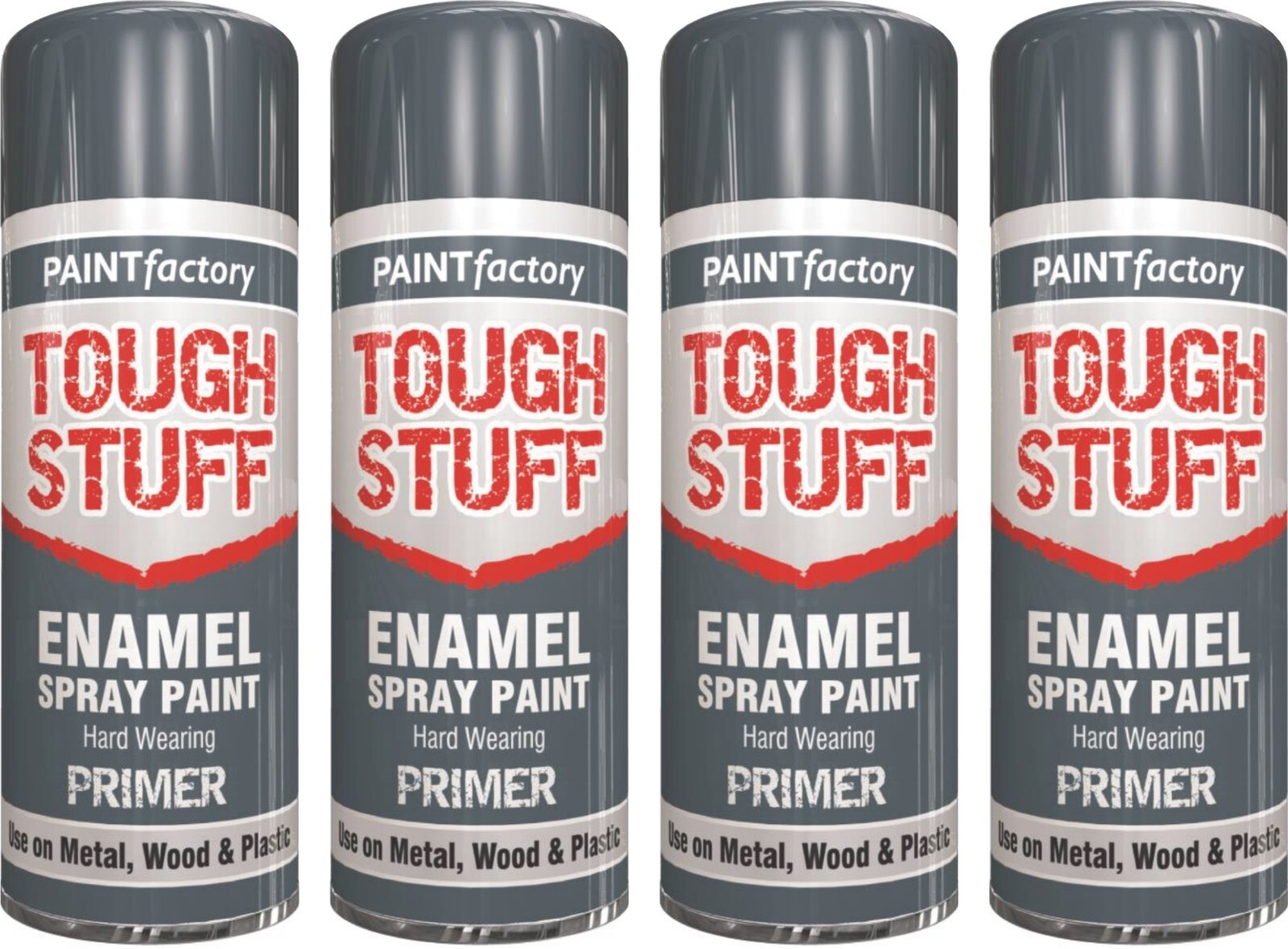 4 x TOUGH STUFF ENAMEL GREY PRIMER SPRAY PAINT FOR WOOD METAL PLASTIC 400ML