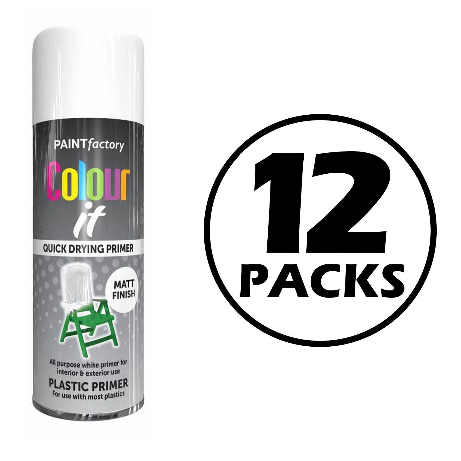 12X Plastic Primer Spray Paint Aerosol Auto Car Lacquer Wood Metal 400ml