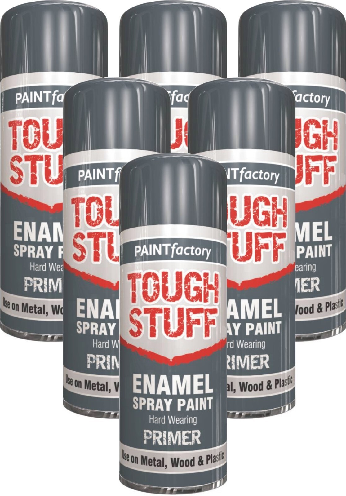 6 x 400ML NEW TOUGH STUFF ENAMEL GREY PRIMER SPRAY PAINT FOR WOOD METAL PLASTIC