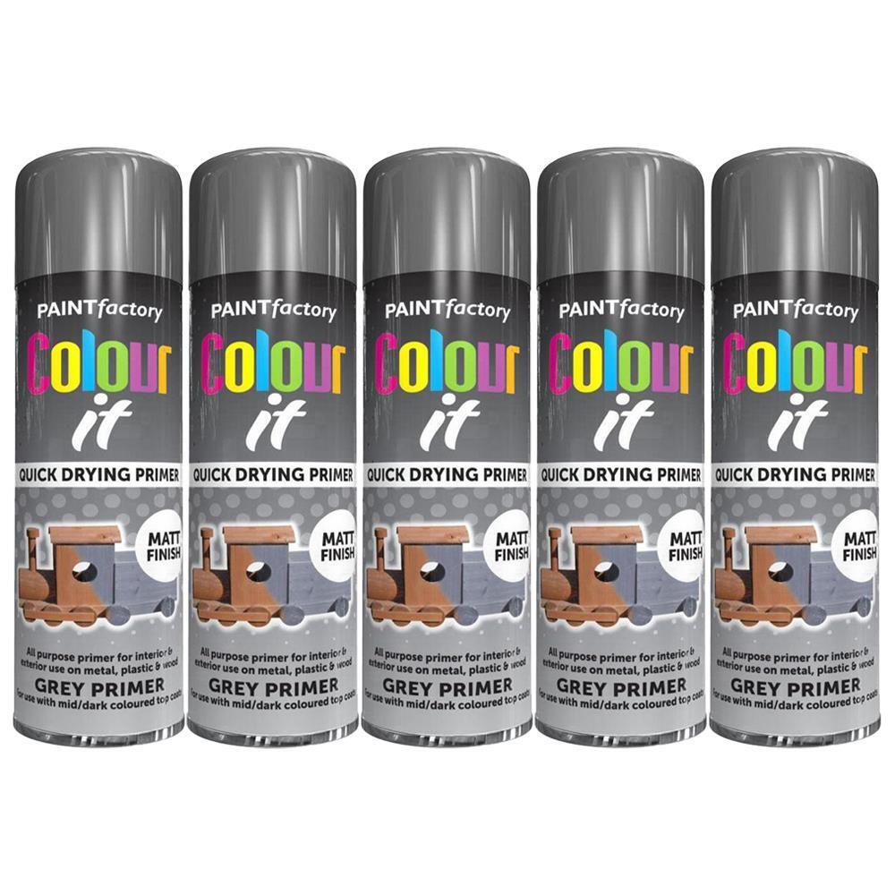 5X Grey Primer Spray Paint Aerosol Auto Car Wood Metal 250ml