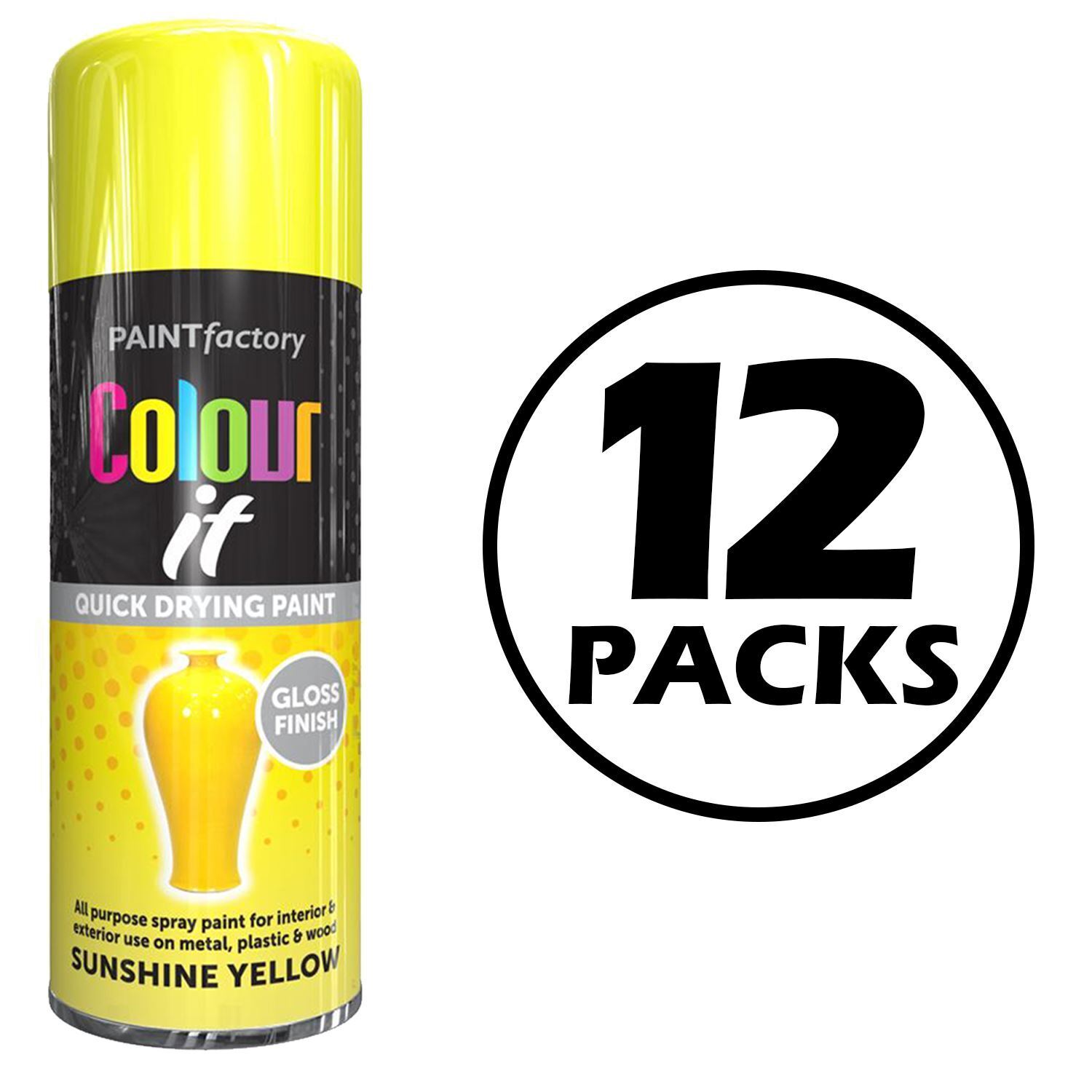 12X COLOUR IT Sunshine Yellow Gloss Metal Plastic Wood Primer Spray Paint 400ml