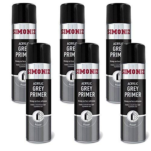 Simoniz 6 x GREY PRIMER QUALITY AEROSOL SPRAY PAINT CANS 500ml