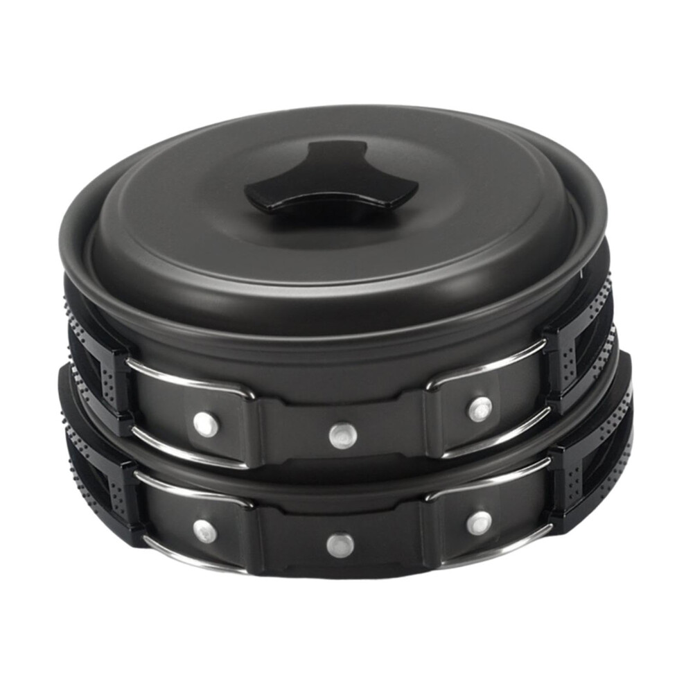 Camping Cookware Set Portable with Carry Bag, Non-Stick Pot and Frying Pan for Campfire, Picnic, and Trekking - Black