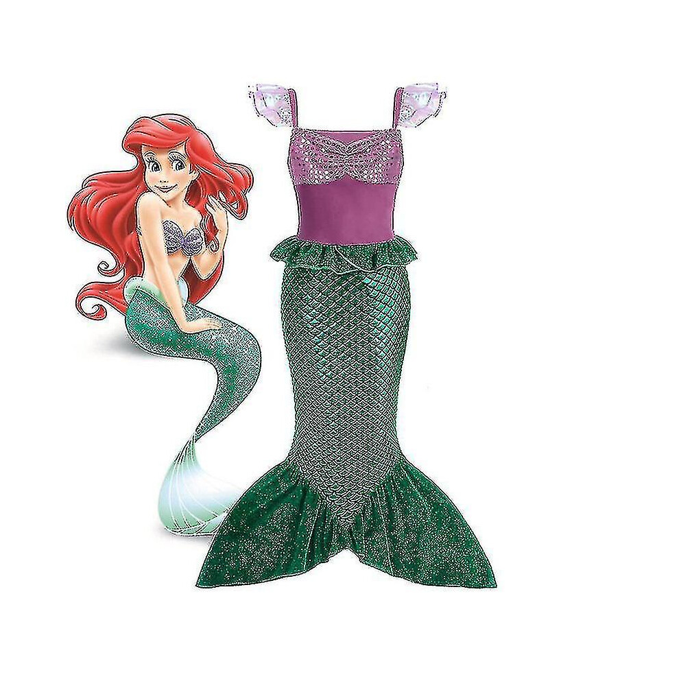 (110, Purple) Girls Little Mermaid Ariel Princess Cosplay Costume Fairytale Outfit 3-10 Years