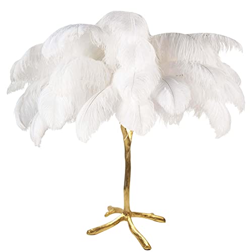 QTHWB Luxurious Resin Floor Lamp with Natural Ostrich Feather Shade - Dimmable, Ideal for Reading in Your Princess Bedroom Home Office, Big Hallway