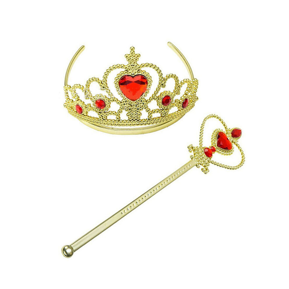 (GoldRed--Crown&Wand) Womens Beauty and The Beast Princess Belle Cosplay Costume Fancy Ball Gown Dress
