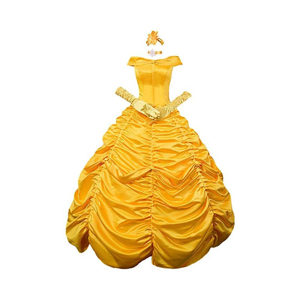 AYYOHON Princess Belle Costume for Women Adult Halloween Party Carnival Costumes Beauty Yellow Long Gown with Gloves Props L