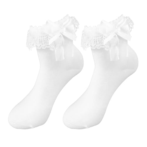 ElevateTech Women Frilly Socks, Cute Ruffle Sock Soft White Turn-Cuff Ankle Breathable Cute Ladies Princess Lace Sock Cool Cotton Socks for Girl Women(Bow)