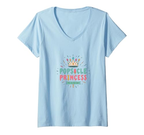 Popsicle Princess: Stay Cool, Rule Sweet Summer Crown V-Neck T-Shirt, Women, Baby Blue, L