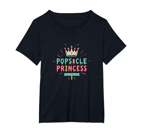 Popsicle Princess: Stay Cool, Rule Sweet Summer Crown T-Shirt, Women's Plus, Black, 1X