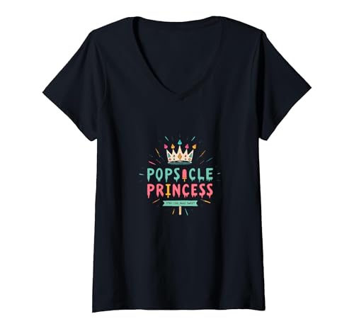 Popsicle Princess: Stay Cool, Rule Sweet Summer Crown V-Neck T-Shirt, Women, Black, XL