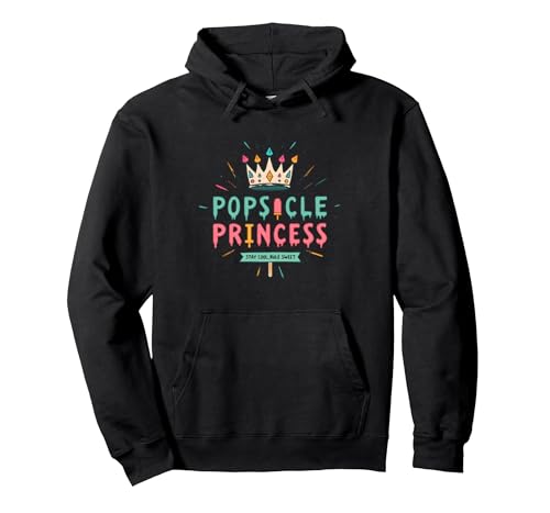 Popsicle Princess: Stay Cool, Rule Sweet Summer Crown Pullover Hoodie, Adult Unisex, Black, XL