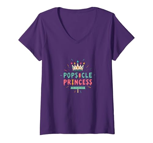 Popsicle Princess: Stay Cool, Rule Sweet Summer Crown V-Neck T-Shirt, Women, Purple, L