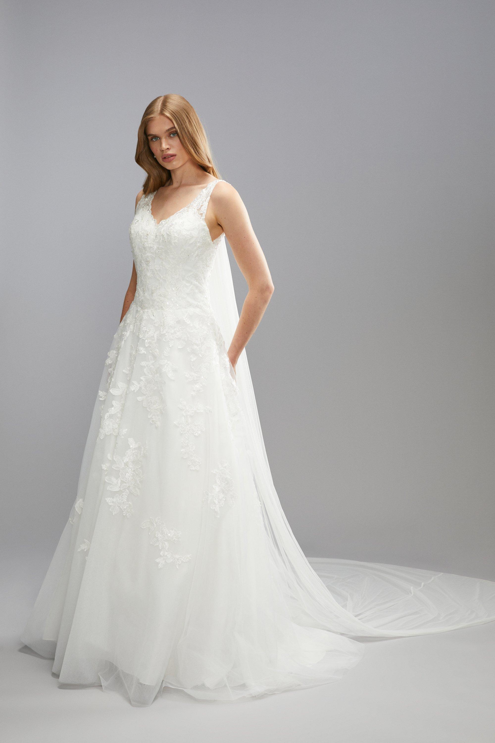 Premium Lace Applique Full Skirted Princess Wedding Dress