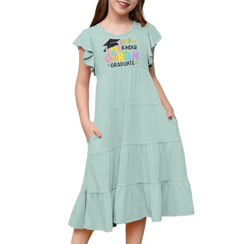 Girls' Dresses,Princess Dresses For Girls 5-6,Girls Nightgowns Flutter Sleeve Pajamas Dress 3D Printed Nightdress Size 5-12 (Mint Green, 6-7 Years)