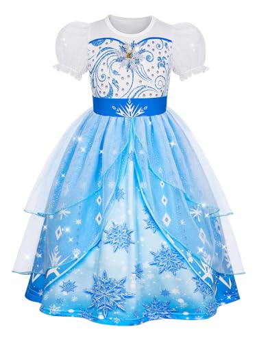 Jurebecia Princess Dresses for Girls Queen Dress Up Costume Kids Halloween Cosplay Puff Sleeve Birthday Party Fancy Dress Blue 3-4 Years