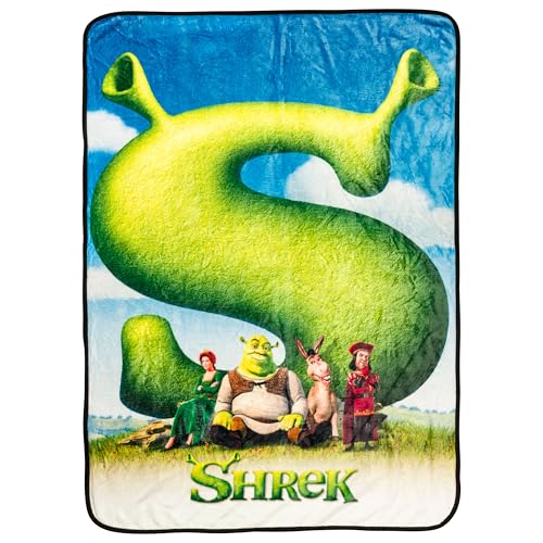 Silver Buffalo Shrek Movie Poster Featuring Donkey, Princess Fiona, and Lord Farquaad 45" x 60" Fleece Throw, Soft and Cozy Blanket, 250 GSM