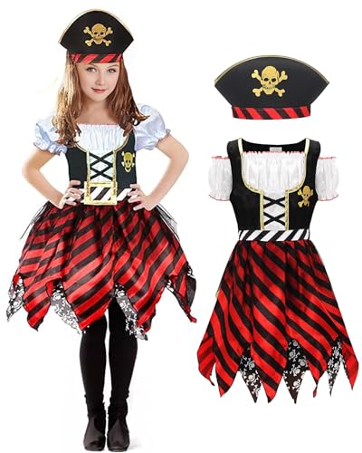 GEMVIE Girl Pirate Costume Kids Halloween Party Cosplay Captain Pirate Buccaneer Princess Dress Outfit