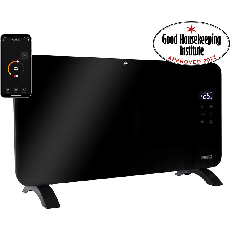 Princess Large Black Smart Panel Heater 2000W Wifi Enabled Touch Screen Display
