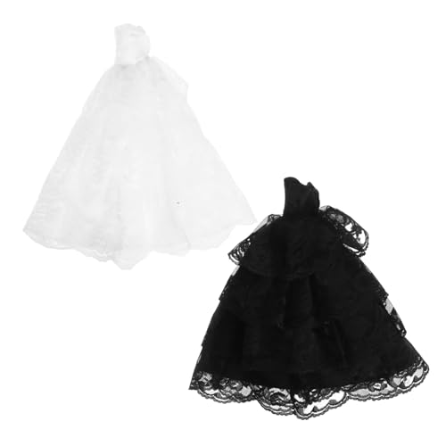 Toyvian 2pcs Miniature Doll Wedding Dress Pure White Black Lace Tutu Gown Handcrafted Doll Princess Outfit for Dollhouse Decoration and Clothes Accessories